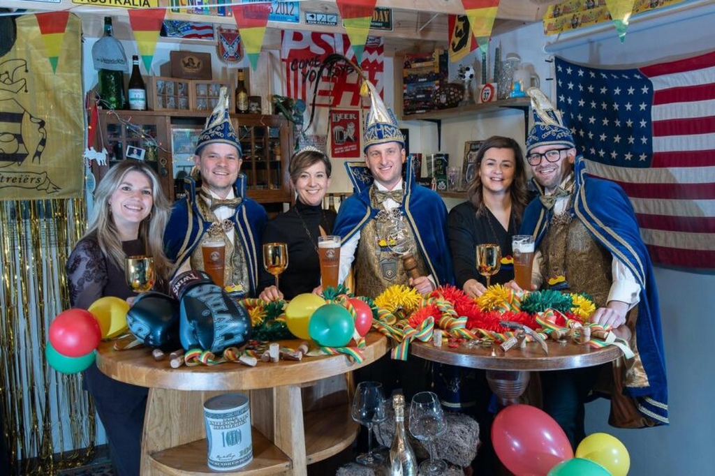 en hun adjudanten Arjan en Hans (met partners).