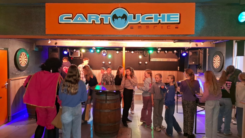 Het grote feest zou weer plaats gaan vinden in Het Beukenhof en de kinderen van leerjaar 7 en 8 mochten naar de soos van OJC Cartouche. Dus de Sint ging weer de koets op en een heel aantal sportieve hulppietjes wilden dit keer die koets wel trekken voor de Sint. Zij waren daarom ook snel genoeg bij Het Beukenhofje. Daar mochten de kinderen de ingestudeerde dansjes per leerjaar voor de Sint uitvoeren. Er was flink voor geoefend, dat kon je wel zien. De Sint en de Pieten hebben er heel erg van genoten. En daarom kreeg iedereen vandaag een cadeautje van de goedheiligman. Sommige kregen een set stiften andere kregen een leuke speelbal.